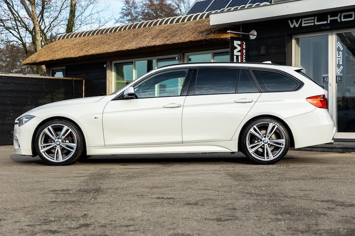 Te koop aangeboden: een BMW 3-serie Touring 320d M Sport Edition uit 2014 in stijlvol wit. Deze sportieve en praktische stationwagen combineert rijcomfort met luxe en prestaties. Voorzien van een automatische transmissie, panoramadak, sportstoelen met lederen bekleding en stoelverwarming en een strak M Sport interieur.