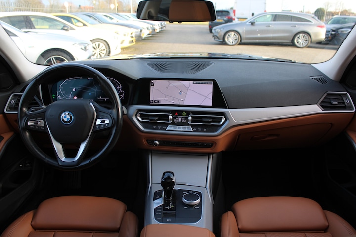 Prachtige BMW 320e Touring in stijlvolle kleurstelling!! Compleet uitgevoerd met o.a. Lederen bekleding,Sportstoelen,Elektrisch bedienbaar Panoramadak,AppleCarplay/AndroidAuto,Achteruitrijcamera incl Parkeersensoren,etc,etc..