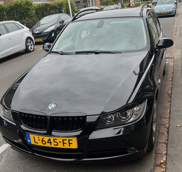Prachtige BMW 325xi Touring 3.0 liter 6-cilinder xDrive (4x4) uit 2008 uitgevoerd in Sapphire Black metallic lak, Dakota lichtbeige leder en Shadow Line.