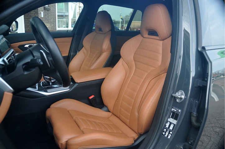 Zeer mooie en dik uitgevoerde BMW M340i Touring in de kleur Dravit Grau en 19 inch M3-velgen. Aan de binnenzijde vinden we het sportinterieur voorzien van het prachtige Cognac Vernasca leder. Verder heeft de eerste eigenaar deze auto rijkelijk voorzien van opties: denk aan het elektrisch bedienbaar schuif-/kanteldak, head-up display, Harman Kardon-audio, adaptieve cruise control met stuurhulp, laser-verlichting etc.