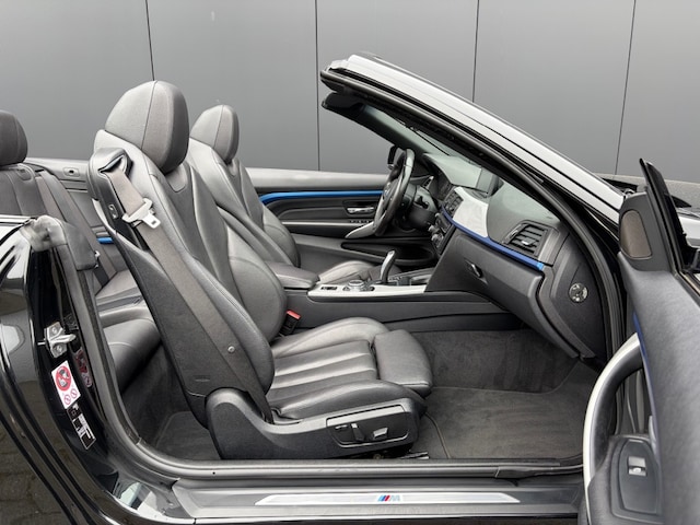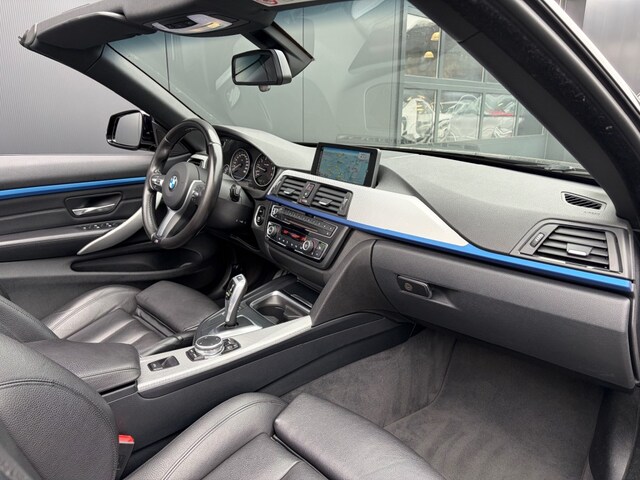 Keurige Nederlandse dealer onderhouden BMW Cabrio 420i M Sport Shadow Automaat voorzien van zwart lederen sportstoelen incl. stoelverwarming en memory, navigatie professional, xenon verlichting, cruise control, parkeersensoren v+a, HiFi speakers, lichtpakket, M Sportpakket, M Sportonderstel, M Sportstuur en M Sportvelgen.