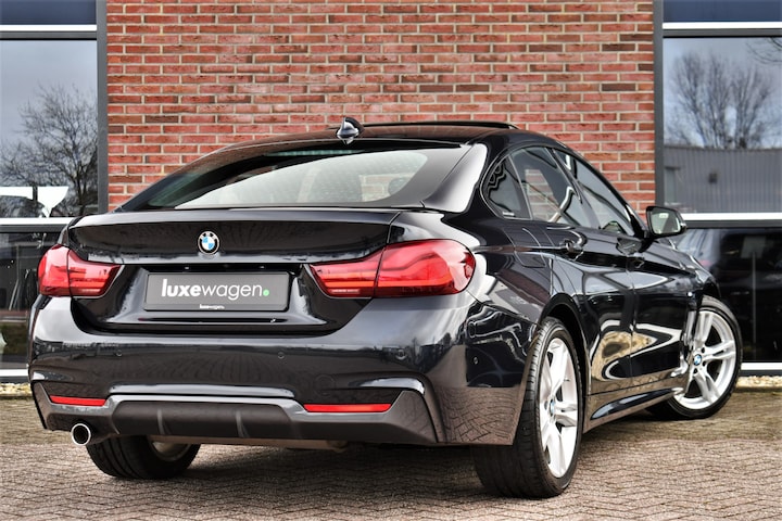 Nederlands geleverde 4-serie Gran Coupe in de kleur Carbon zwart, keurig onderhouden en compleet met: M-Sport pakket, elektrisch glazen dak, head-up display, camera achter, HiFi met DAB en compleet shadow line!