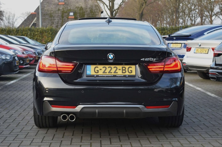 BMW 4-serie Gran Coupé 420i High Executive Edition M-Sport, voorzien van o.a.: automatische airco, lederen interieur, full-map navigatiesysteem, head-up display, 19" lichtmetalen velgen, elektrisch glazen panoramadak, LED-koplampen, parkeersensoren voor en achter, multifunctioneel lederen stuurwiel, cruise control, onderhoudshistorie ingevuld aanwezig.