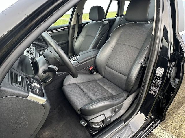 U merkt het aan de look and feel van deze auto: dit is kwaliteit. De BMW 5-serie Touring is ontworpen volgens de Duitse opvattingen van kwaliteit en degelijkheid, maar biedt tegelijk een hoge mate van comfort en uitstekende rijkwaliteiten. Een viercilinder motor en een automatische transmissie zorgen voor de uitstekende prestaties van deze auto. Verwen uzelf met het lederen interieur in deze auto. U past de stoelen moeiteloos aan, ze zijn elektrisch in te stellen en hebben bovendien een geheugen. De luchtvering levert niet alleen meer comfort, maar draagt tevens bij aan de veiligheid. Xenonverlichting zorgt voor een heldere witblauwe lichtkleur en een scherp lichtbeeld. Zuinig zijn met brandstof, belangrijker dan ooit. Het ingebouwde start-stopsysteem zorgt ervoor dat de motor uit gaat bij stilstand en weer start als u verder wilt. Bij de rijke uitrusting horen ook 17 inch lichtmetalen velgen, sportonderstel en extra getint glas.