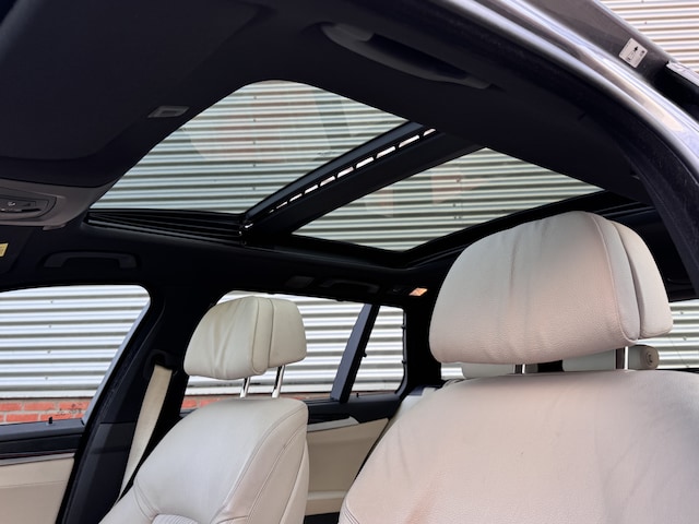 Duitse ingenieurskunst staat synoniem voor kwaliteit en betrouwbaarheid, iets wat u direct zult herkennen wanneer u deze BMW 5-serie Touring start. Hij heeft een benzinemotor en een automatische transmissie. De auto is uitgerust met lederen bekleding. In de verwarmbare voorstoelen zitten is elke keer een welkom gevoel. Chauffeur en bijrijder zitten stabiel in de scherpe bochten door de sportstoelen. Het interieur baadt in daglicht dankzij het elektrisch bediende glazen panoramadak. Een praktische extra is de elektrisch bedienbare achterklep die opent en sluit met een druk op de knop. In het donker zorgt de xenonverlichting voor een goed zicht op de weg. Tot de uitrusting behoren ook 18 inch lichtmetalen velgen, BMW M-sportpakket en in delen neerklapbare achterbank.