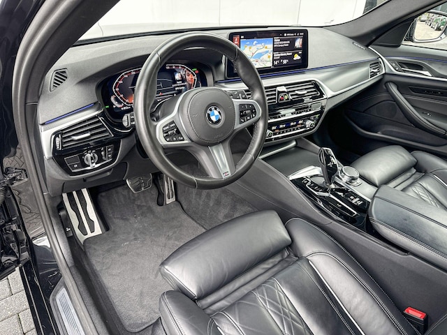 Het digitale dashboard is een perfecte bijrijder. Alles benodigde informatie is permanent zichtbaar of opvraagbaar. Navigatie, onderhoudsstatus, vergrendeling, audio... de mogelijkheden van remote services zijn haast oneindig. Ook deze auto laat zich bedienen en analyseren via uw smartphone! In deze 5-serie Touring vindt u schakelaars op het stuur om het navigatiesysteem met harde schijf te bedienen en het audiosysteem met DAB-ontvangst. Automatische airconditioning regelt volautomatisch de temperatuur. U kiest de gewenste temperatuur en het systeem doet de rest. Soms heeft u meer parkeerruimte dan u denkt. Maar soms ook niet. De parkeersensoren vertellen precies hoeveel. Met regensensor, cruise control, sportstuurwiel, automatisch dimmende buitenspiegels, centrale deurvergrendeling met afstandsbediening en boordcomputer is deze BMW helemaal compleet.