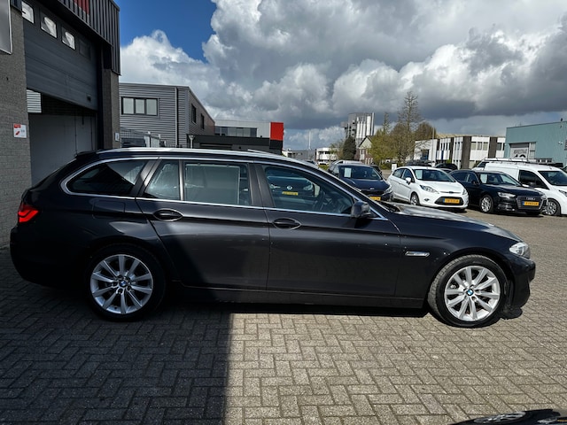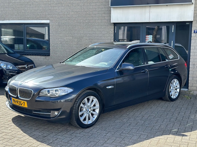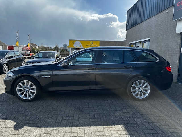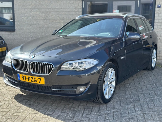 BMW maakt rijden geweldig. Een prachtmerk met een indrukwekkende historie die nog steeds actueel is. Een krachtige motor geeft deze auto zijn sportieve prestaties. De luchtvering absorbeert niet alleen oneffenheden in het wegdek, maar verhoogt ook aanzienlijk het rijplezier. Het lederen interieur is een stijlvolle extra van deze BMW 5-serie Touring. Een weldaad voor u en uw bijrijder: deze BMW 5-serie Touring heeft verwarmbare voorstoelen. Chauffeur en bijrijder zitten stabiel in de scherpe bochten door de sportstoelen. Wat een licht geeft dat glazen elektrisch bedienbare panoramadak. De elektrische achterklep opent met een druk op de knop, zodat u gemakkelijk toegang heeft tot de bagageruimte. Ook is de auto voorzien van: 18 inch lichtmetalen velgen en bi-xenon koplampen.