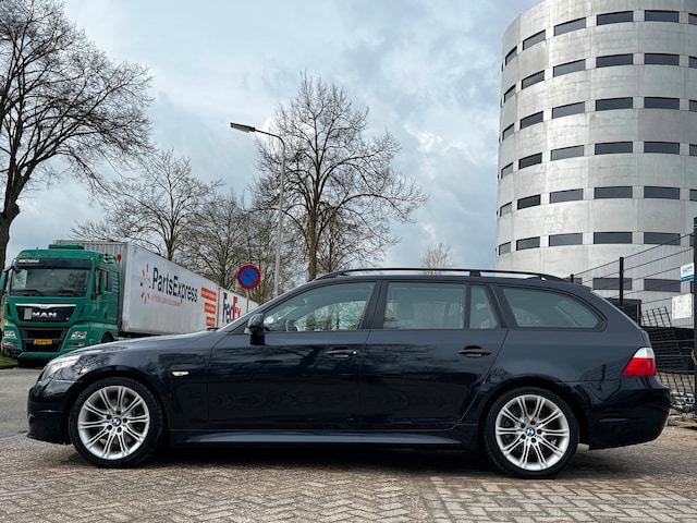 De BMW 5-serie Touring vertegenwoordigt het beste van degelijk Duits design. Een zescilinder motor en een automatische transmissie zorgen samen voor een snelle en comfortabele rijervaring. Een lederen interieur staat al decennia voor stijl en klasse. Ook bij deze BMW 5-serie Touring. Zit u goed? De stoelen zijn eenvoudig instelbaar dankzij de elektrische bediening met geheugen. De behaaglijkheid van de verwarmde achterbank zal ook uw passagiers bevallen. In het donker zorgt de xenonverlichting voor een goed zicht op de weg. Verder is de BMW uitgerust met: elektrische zonnerollo voor de achterruit, 18 inch lichtmetalen velgen, sportonderstel, halflederen bekleding en snelheidsafhankelijke stuurbekrachtiging.