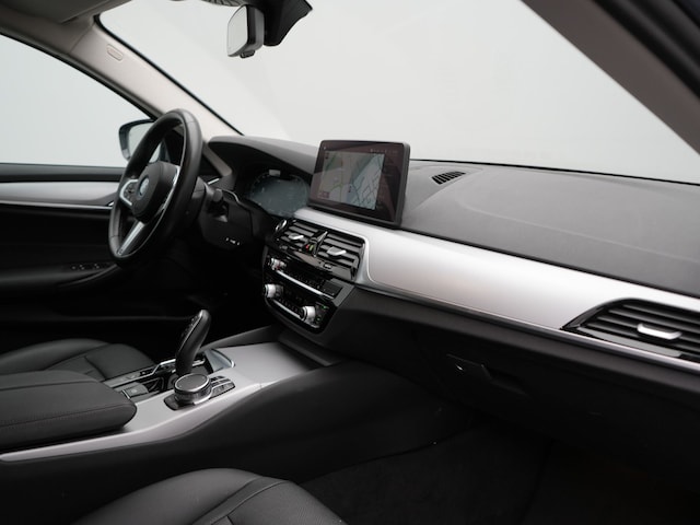 Een cockpit, een informatiecentrum... Wat is de cabine eigenlijk niet? Dankzij het digitale dashboard bent u van alles op de hoogte. Zo'n lekkere jonge auto heeft natuurlijk leuke extra's, zoals remote services. Met een speciale app maakt u overal verbinding met de auto. Zo kunt u functies activeren en controleren. Een goede veiligheidsvoorziening is de stuurbediening voor belangrijke functies. De auto is natuurlijk voorzien van een navigatiesysteem met harde schijf en het audiosysteem biedt glasheldere geluidskwaliteit dankzij DAB-ontvangst. Omdat u nu eenmaal niet overal ogen heeft, is deze BMW 5-serie Touring voorzien van een achteropkomend verkeer waarschuwing die registreert wanneer de afstand tot uw achterligger te krap is. Nooit meer te warm of te koud. De automatische airconditioning zorgt altijd voor de temperatuur die u kiest. Ook is de BMW uitgerust met: parkeersensoren achter, regensensor, cruise control, sportstuurwiel, automatisch dimmende buitenspiegels en centrale deurvergrendeling met afstandsbediening.