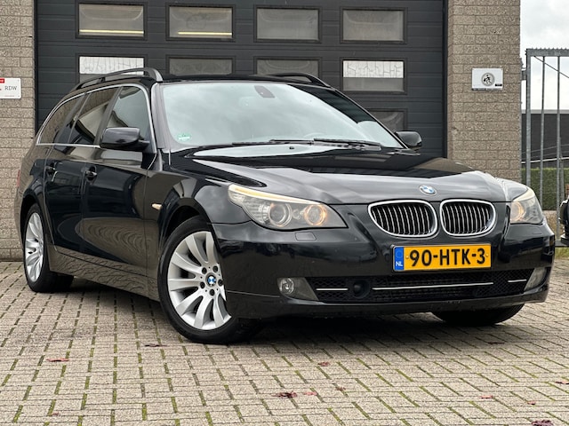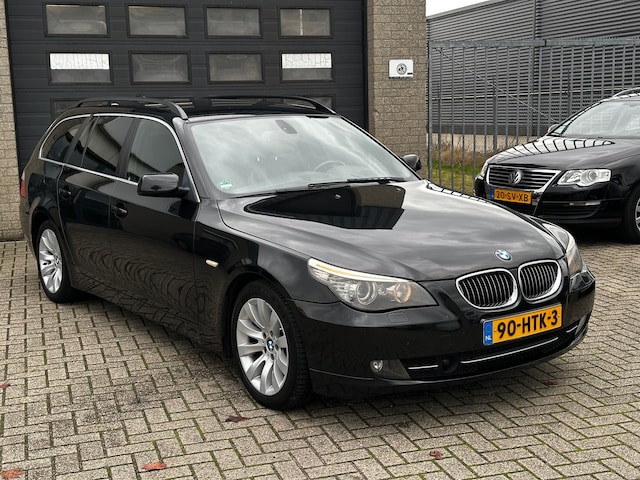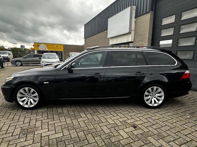 Uw ultieme rijbeleving staat hier te wachten. Ervaar het dus zelf: BMW maakt rijden geweldig. De uitstekende prestaties van deze auto komen van de zescilinder motor en de automatische transmissie. Deze BMW 5-serie Touring is voorzien van luchtvering, en dat is te merken aan de rimpelloze wegligging. Altijd al een voorkeur voor een lederen interieur gehad? Deze BMW 5-serie Touring heeft het! Zit u goed? De stoelen zijn eenvoudig instelbaar dankzij de elektrische bediening met geheugen. Een handige voorziening op deze auto is de elektrische achterklep die u op afstand kunt openen. De gasontladingslampen van de xenonverlichting zorgen voor een krachtige en heldere lichtbundel. Tot de voorzieningen van deze auto behoren 18 inch lichtmetalen velgen, halflederen bekleding, warmtewerend glas, verstelbare lendensteunen en snelheidsafhankelijke stuurbekrachtiging.