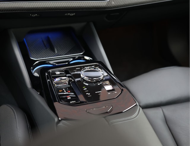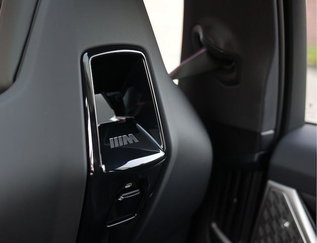 Binnenin overheerst verfijning. Merino lederen bekleding in zwart, bedieningselementen in Crafted Clarity glas en carbonaccenten met zilverdraad zorgen voor een interieur van uitzonderlijk niveau. De geventileerde M-multifunctionele stoelen, stoelverwarming voor- en achterin en viervoudige klimaatautomaat maken elke rit aangenaam voor iedere inzittende, ongeacht het seizoen. Het panoramische glazen dak en de sfeervolle interieurverlichting versterken het gevoel van ruimte en luxe.