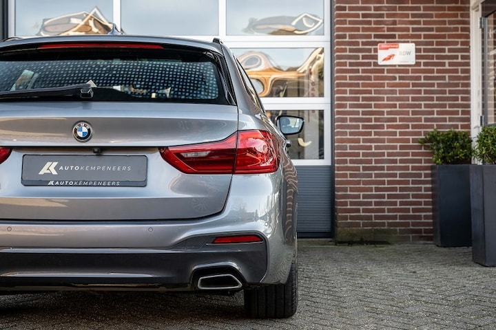 Nieuw binnen! Een sportieve en complete BMW 520i Touring M Sport. Deze auto is voorzien van een krachtige benzinemotor met een vermogen van 184 pk. De auto is uitgevoerd in de kleur Bluestone Metallic. Deze BMW is afkomstig van het bouwjaar 2019 en heeft slechts 100.579 km gereden. Deze auto is origineel Nederlands geleverd dus beschikt over het NAP keurmerk. De BMW verkeert in een uitstekende staat en is volledig onderhouden. Daarnaast is deze auto voorzien van een mooie complete lijst aan opties. Op de lijst aan opties van deze auto vindt u o.a.: M Sport pakket, panoramadak, 19 inch lichtmetalen velgen, Head-Up display, BMW adaptieve Led, 360° Camera, lederen comfort seats, memory, keyless start/stop, stoel/stuurverwarming, ambiance verlichting, climate control, DAB, HIFI geluidsinstallatie, BMW Live Cockpit professional, draadloze telefoon oplaadmogelijkheid, M Sport stuurwiel, zwarte hemelbekleding, etc.