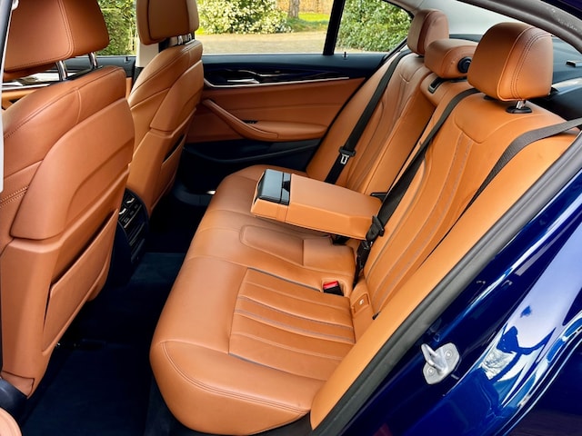 Soms kom je een auto tegen met een zó mooie uitvoering dat je er het liefst zelf in wilt rijden. Dat had ik met deze BMW 530e. De verbluffend mooie kleurcombinatie van Mediterranblau metallic met cognac lederen interieur en blauw stiksel geeft deze 5-serie een bijzonder luxe en exclusieve uitstraling.