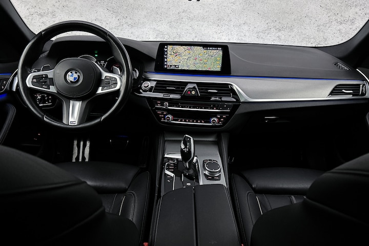 Vergeten af te sluiten? Bandenspanning onvoldoende? De speciale app geeft u direct een seintje met behulp van Connected Services. Terwijl het navigatiesysteem de ideale route voor u uitstippelt, geniet u van de kwaliteit van het audio-installatiesysteem. De bediening is bovendien gemakkelijk via knoppen op het stuur of via spraak. De kans op een kop-staart botsing wordt sterk gereduceerd door het systeem van achteropkomend verkeer waarschuwing. Met de automatische airconditioning selecteert u de gewenste temperatuur. Het systeem doet de rest. Boem is ho? Niet bij deze BMW 5-serie. De piepjes van de parkeersensoren waarschuwen u op tijd voor obstakels. Deze BMW is voorzien van sportstuur met schakelpaddels, regensensor, cruise control, dvd-systeem, isofix-aansluiting en centrale portiervergrendeling.