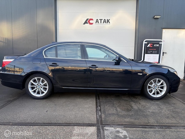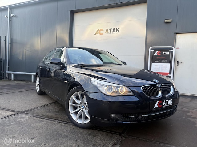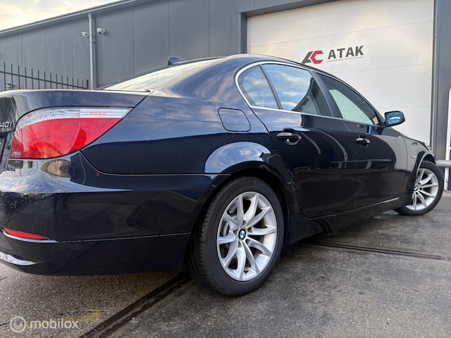 Ontspannen en zorgeloos autorijden, dat doet u met deze BMW 5-serie. Deze auto uit het bouwjaar 2008 heeft 107648 kilometer gelopen. Met zijn benzinemotor en automatische transmissie is dit een prima auto voor nog vele kilometers. Geniet u maar lekker van het elektrisch bediende glazen panorama dak en het lederen interieur. U hebt het verdiend! U past de stoelen moeiteloos aan, ze zijn elektrisch in te stellen en hebben bovendien een geheugen. Xenonverlichting zorgt voor een heldere witblauwe lichtkleur en een scherp lichtbeeld. Bij de uitrusting van deze auto horen onder meer elektrische zonnerollo voor de achterruit, 17 inch lichtmetalen velgen, sportonderstel, adaptief dempingsysteem, warmtewerend glas en in delen neerklapbare achterbank.