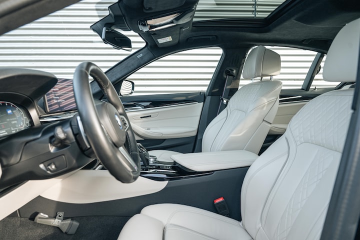 Hij oogt indrukwekkend en sportief, deze BMW 5 Serie. Het is een dealeronderhouden auto uit 2021 en hij heeft 56119 kilometer op de teller staan. De uitstekende prestaties van deze auto komen van de zescilinder motor en de automatische transmissie. Tijdens gure dagen is het prettig zitten in de verwarmbare voorstoelen. Schouders en onderrug krijgen een VIP-behandeling door de comfortstoelen voorin. Dat noemen ze nou een ruimtelijk effect: het elektrisch bediende glazen panoramadak. De elektrisch bedienbare achterklep opent met een druk op de knop. Laserlight koplampen toveren het donker om in daglicht. Zonder tegemoetkomend verkeer te hinderen.