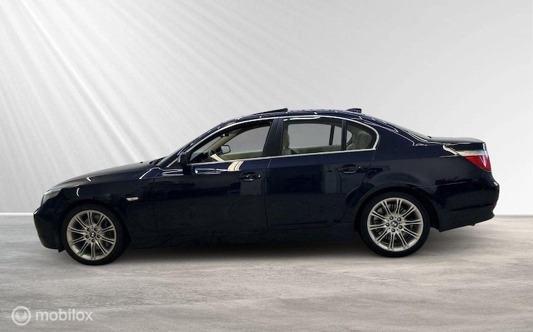Stijlvolle en mooie BMW 545 met weinig eigenaren en lage kilometerstand. Regelmatig onderhouden. Voorzien van de volgende opties: comfortstoelen voorin met geheugenfunctie, metallic Orient Blue, Dakota leder, elektrisch glazen schuifdak, stoelverwarming voor en achter, HiFi-luidsprekers, actieve xenon koplampen, parkeersensoren voor en achter, actieve stuurbekrachtiging, sportonderstel, zomer- en winterbanden op lichtmetalen velgen, nieuwe voorruit.