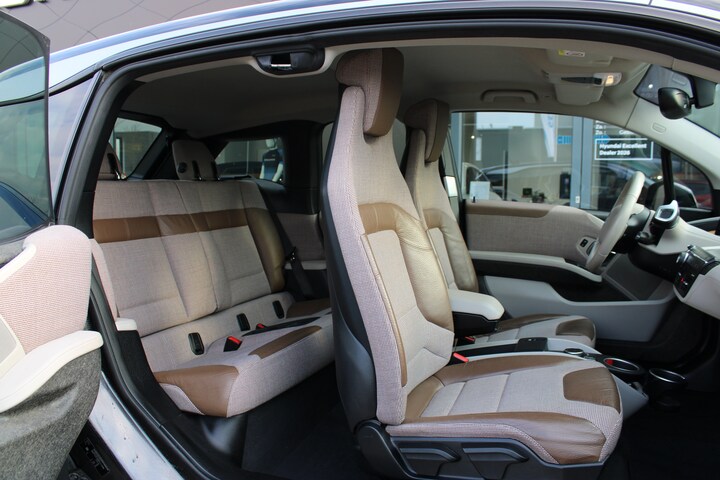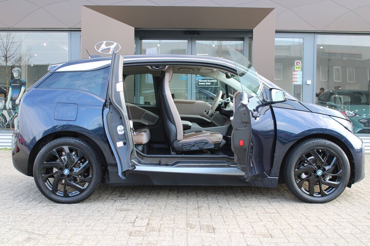 Bij BMW weet u: onder de motorkap zit standaard extra power verborgen. En dat is altijd lekker. Hoe zullen we het zeggen? BMW maakt rijden geweldig. Inderdaad. De prestaties van de elektromotor kunnen de vergelijking met een brandstofmotor moeiteloos aan. De krachtige motor geeft deze BMW uitstekende prestaties. Van binnen ziet u een lederen interieur, een stijlvolle uitvoering. In de verwarmbare voorstoelen zitten is elke keer een welkom gevoel. Natuurlijk behoren 19 inch lichtmetalen velgen, LED koplampen, halflederen bekleding, extra getint glas, in delen neerklapbare achterbank en LED-achterlichten ook tot de uitrusting van deze complete auto. De standkachel verwarmt het interieur voor. Dat betekent meer comfort voor u en minder slijtage voor de auto. Dankzij Connected Services houdt u de auto nog gemakkelijker in topconditie. Elke dag. Zo kan muziek in de auto klinken: het high performance audiosysteem levert topklasse geluid! Beste route, verwachte aankomsttijd: uw eigen navigatiesysteem met harde schijf vertelt u alles! De achteropkomend verkeer waarschuwing bewaakt de afstand tot achterliggers en geeft een signaal als er te weinig ruimte is. Natuurlijk behoren automatische airconditioning, DAB ontvangst, parkeersensoren achter, regensensor, cruise control en keyless entry ook tot de uitrusting van deze complete auto. Zoals u mag verwachten van deze BMW i3 is hij uitgerust met een reeks aan actieve veiligheidssystemen. In een gevaarlijke situatie is een zo kort mogelijke remweg van levensbelang. De Brake Assist zorgt dat u dan maximaal in de ankers gaat. Elektrisch rijden is de toekomst. En die begint vandaag. Bel nu voor een afspraak en maak een proefrit!