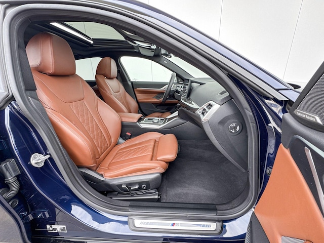 Een optimaal rijbereik, geen emissies en probleemloze techniek. Met de BMW i4 haalt u een elektrische auto van topklasse in huis. De aandrijflijn maakt gebruik van de meest moderne accutechniek, zodat het opladen in zo kort mogelijke tijd gebeurt. Het rijbereik van deze auto is groot genoeg om er de meest voorkomende dagelijkse ritten mee te maken. Stel u voor: zoevend over de snelweg terwijl het gulle daglicht het lederen interieur binnenvalt door het elektrisch bediende glazen panorama dak. En wat gemak betreft: daar zorgt onder andere de elektrisch bedienbare achterklep voor. Hoe koud het buiten ook is, de stoelverwarming geeft u meteen een behaaglijk gevoel. Koude handen? Da's voorbij met het verwarmd stuurwiel. Pak aan! Natuurlijk behoren 19 inch lichtmetalen velgen, LED koplampen, adaptief dempingsysteem, donker getint glas achter, LED-achterlichten en verwarmde ruitensproeiers ook tot de uitrusting van deze complete auto.