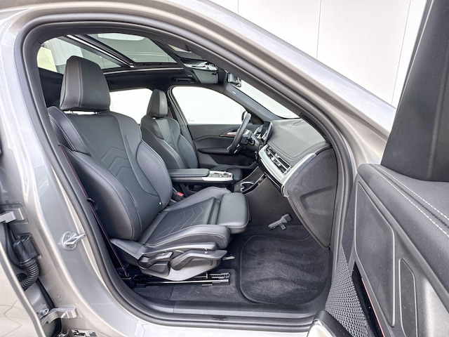 Valt u voor de bijzondere vormgeving of voor de vooruitstrevende techniek? Wat u ook belangrijk vindt, de elektrische BMW iX1 heeft het allemaal. Nooit meer naar de pomp! De elektromotor opladen en rijden maar! Ga samen met uw bijrijder lekker zitten in de verwarmbare voorstoelen. Pittig rijden wordt nog comfortabeler dankzij de fraaie sportstoelen. Als u blij wordt van licht en ruimte dan zult u zeker genieten van het elektrisch bediende panoramadak. De achterklep opent automatisch met een druk op de knop. Handig als u met volle handen staat. Tot de uitrusting behoren ook 20 inch lichtmetalen velgen, LED koplampen, adaptief dempingsysteem, sportinterieur, in delen neerklapbare achterbank en LED-achterlichten.