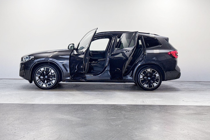 Milieuvriendelijke techniek gaat bij de BMW iX3 hand in hand met soepele prestaties en uitgesproken design. Met de combinatie van elektrische aandrijving en automatische transmissie manoeuvreert u soepel door het verkeer. Het stijlvolle lederen interieur geeft deze BMW iX3 net dat beetje extra. U past de stoelen moeiteloos aan, ze zijn elektrisch in te stellen en hebben bovendien een geheugen. Een heerlijk zonnetje, of indrukwekkende wolkenpartijen? Bekijk ze onbelemmerd door het elektrisch bediende glazen panoramadak. De elektrisch bedienbare achterklep opent met een druk op de knop. Nooit meer koude handen of koude vingers in de auto. Stuurverwarming zorgt ervoor dat het stuur behaaglijk warm aanvoelt. Laserlight koplampen toveren het donker om in daglicht. Zonder tegemoetkomend verkeer te hinderen. Tot de uitrusting behoren ook 20 inch lichtmetalen velgen, LED-koplampen, sportonderstel, adaptief dempingsysteem, geluidsisolerende ramen en in delen neerklapbare achterbank.
