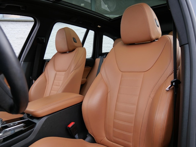 Erg fraai is de kleurstelling, wat ons betreft de ultieme configuratie voor de iX3. De carrosserie is gespoten in de populaire BMW kleur 'Carbonschwarz Metallic'. Het interieur is volledig in Vernasca leder uitgevoerd in de kleur 'Cognac'. De hemelbekleding is in het antraciet uitgevoerd voor een luxere uitstraling.