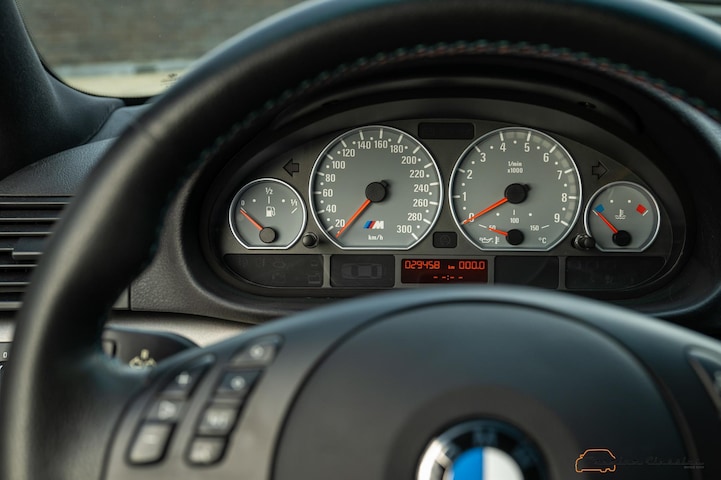 Op deze diepblauwe BMW E46 M3 raak je niet uitgekeken en dat verklaart waarom de kilometerstand slechts 29.000 bedraagt. Dat lees je aan alle kanten aan deze smetteloze coupé af. Typisch een verzamelaarsobject om op mooie dagen van te genieten, wanneer de lucht perfect bij de lak kleurt. Dan mag de zorgvuldig onderhouden S54-motor uithalen tot 8000 tpm en zijn volle 343 pk vrijgeven. Dit is puur mechanisch autorijden zonder filters, mede dankzij de handgeschakelde zesversnellingsbak. Zodra je de zescilindersound ervaart die de geluidstechnici van BMW Motorsport wisten te creëren, vraag je je af of er ooit een schijfje in de cd-wisselaar heeft gelegen.