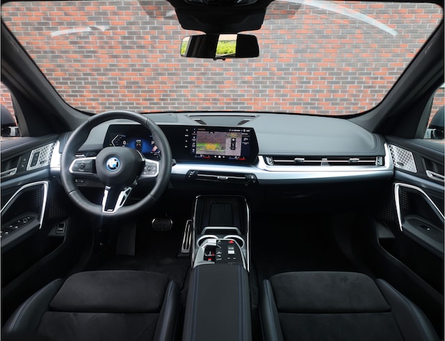 Het interieur is ook sterk verbeterd. De elektrisch verstelbare sportstoelen zijn bekleed met zwart Alcantara en leder en zijn voorzien van verwarming. Door het gehele interieur zijn ook blauwe contrasterende stiksels te vinden voor een extra sportieve touch. Daarnaast is dit exemplaar van alle gemakken voorzien. Zo geniet u in deze hybride X1 van een panoramadak, Harman Kardon, Head-up display en alle veiligheidssystemen die rijden nog gemakkelijker maken.