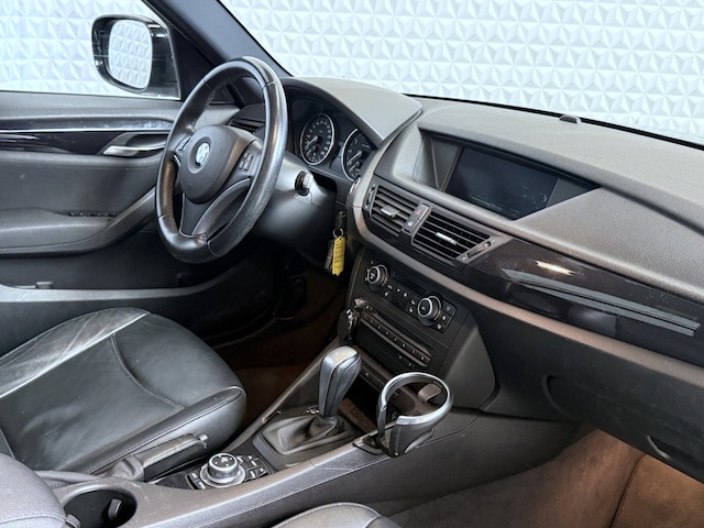 Hier staat een hele mooie BMW X1 met een originele kilometerstand. Uitvoering met o.a. een automatisch regelbare airco, climate + cruise control, elektrische ramen (4) + spiegels, geïntegreerde audio inclusief multimedia (AUX/USB) aansluitingen, licht- en regensensor, navigatie systeem af-fabriek met kaartweergave, parkeerhulp voor én achter, stoelverwarming, en een zwart lederen interieur gecombineerd met zwarte hemelbekleding. De kleur, de opties, de uitstraling, JA; deze auto heeft het helemaal!