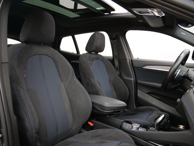 Rijden als nieuw? Dan is deze BMW X2 een fantastische buitenkans. Prille cijfers op de teller, piepjong ogend, verbluffend actueel in extra's en opties... Deze BMW X2 heeft het allemaal! Hij heeft een benzinemotor en een automatische transmissie. Het stijlvolle lederen interieur geeft deze BMW X2 net dat beetje extra. Op koude en donkere dagen zijn de verwarmbare voorstoelen een uitkomst. Laat die bochten maar komen! In de sportstoelen zitten u en uw bijrijder altijd goed! Wat een licht geeft dat glazen elektrisch bedienbare panoramadak. De achterklep opent automatisch met een druk op de knop. Handig als u met volle handen staat. In deze BMW profiteert u onder andere ook van: 19 inch lichtmetalen velgen, LED koplampen, sportonderstel, in delen neerklapbare achterbank, LED-achterlichten en verstelbare lendensteunen.