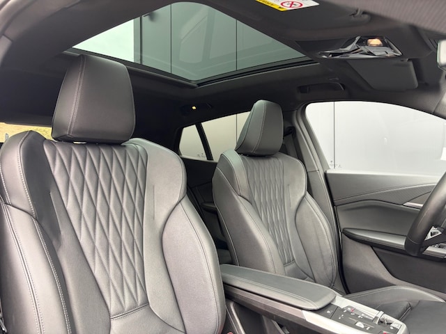 Keurige BMW X2 sDrive20i M Sport Shadow Automaat voorzien van zwart lederen sportstoelen incl. stoelverwarming, panoramadak, head up display, Harman/Kardon Surround sound, adaptieve LED verlichting, 360ºCamera, Iconic Glow grill, sfeerverlichting, draadloos telefoon lader, M Sportpakket, M Sportstuur, M adaptief onderstel, Luxury dashboard, comforttoegang, Live cockpit professional, privacy glas en M Sportvelgen.