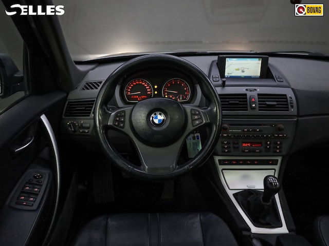 In deze X3 vindt u schakelaars op het stuur om het cd-wisselaar te bedienen en het navigatiesysteem. Of het buiten nu warm is of koud, dankzij automatische airconditioning is het binnen altijd behaaglijk. Inparkeren zonder angst voor schade. De parkeersensoren helpen u om moeiteloos in de kleinste parkeervakken te manoeuvreren. De elektronische systemen in deze BMW helpen u actief om comfortabeler te rijden. Een automatisch inschakelbare verlichting en een regensensor houden de omstandigheden onderweg in de gaten. Met de cruise control komt u bijna nog fitter aan dan u vertrekt. Met buitentemperatuurmeter, automatisch dimmende binnenspiegel, lederen stuur, centrale deurvergrendeling met afstandsbediening, boordcomputer en lederen versnellingspook is deze auto helemaal compleet.