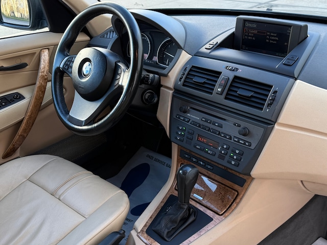 Het stijlvolle silhouet van de BMW X3 benadrukt de ingetogen luxe van deze auto. De uitstekende prestaties van deze auto komen van de zescilinder motor en de automatische transmissie. De auto is uitgerust met lederen bekleding. Bij de uitrusting van deze BMW horen onder meer 18 inch lichtmetalen velgen, dakspoiler, in hoogte verstelbare passagiersstoel, in delen neerklapbare achterbank en verwarmde ruitensproeiers.