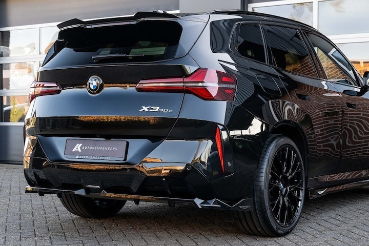 Online! Een compleet uitgevoerde BMW X3 30e xDrive M Sport Pro. Deze BMW is voorzien van een krachtige benzinemotor. Deze motor levert een vermogen van 299 pk. De auto is uitgevoerd in de kleur Black Sapphire Metallic . Het interieur is uitgerust met Veganza Perforiert Und Gesteppt Schwarz. Deze BMW heeft slechts 7.710 km gereden. De auto verkeert in een uitstekende staat. Daarnaast is deze auto voorzien van fabrieksgarantie t/m 29/07/2027. Ook is deze auto voorzien van een mooie complete lijst aan opties. Op de lijst aan opties van deze auto vindt u o.a.: M Sport pro pakket, Elektrische stoelbediening met geheugen, Stoelverwarming, Adaptieve LED Lights, Iconic glow, Ambient light, Shadow, Keyless entry/start/stop, Camera, 21 inch lichtmetalen velgen, Sportstoelen, Elektrisch wegklapbare trekhaak, Lederen bekleding, Stoelverwarming, 4 zone Climate control, Ambiance verlichting, DAB, Draadloos laden, adaptieve cruise control, Zwarte hemelbekleding, etc.