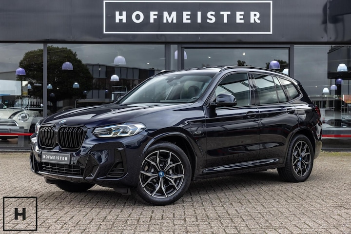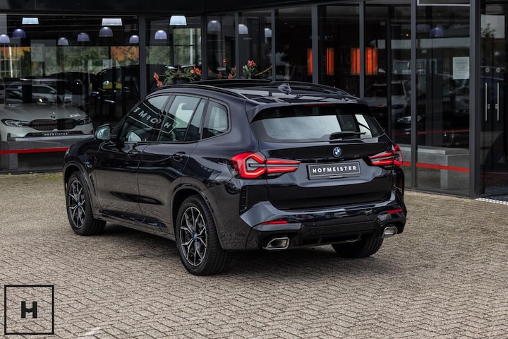 X3 met de gewilde hybride aandrijflijn in de facelift versie (LCI). Snel, zuinig, praktisch. Bij de X3 met M-pakket gaat dat ook nog eens gepaard met een vlot en sportief uiterlijk. In BMW’s signatuur kleur ‘Carbonschwarz’ (feitelijk diep donkerblauw) met hoogglans zwarte accenten komen de verbeteringen van het facelift model goed tot hun recht.