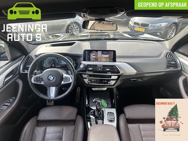 In één oogopslag zijn alle vitale functies afleesbaar dankzij het digitale dashboard. De vier camera's die samen de 360 graden camera vormen, bieden u de mogelijkheid om obstakels in elke richting te zien. Deze BMW X3 is voorzien van remote services. Via uw smartphone bedient u diverse functies ook op afstand en krijgt u informatie over de status van uw auto. Deze BMW is voorzien van spraakbediening voor het navigatiesysteem en voor het audiosysteem met DAB-ontvangst. Maar u kunt ook de knoppen op het stuur gebruiken. Bij het wisselen van rijbaan kan een dode hoek ontstaan waardoor achterliggers te dichtbij kunnen komen. De achteropkomend verkeer waarschuwing geeft in dat geval automatisch een signaal. Deze auto is voorzien van automatische airconditioning, regensensor, cruise control, sportstuurwiel, automatisch dimmende binnenspiegel en isofix-aansluiting.