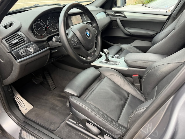 De X3 M-Sport onderscheidt zich door zijn dynamische uitstraling, met het M-Sport pakket, 20 inch lichtmetalen velgen, xenonverlichting en de herkenbare BMW-grille. Binnenin tref je een luxe en sportief interieur met comfortabele sportstoelen, een navigatiesysteem, parkeersensoren en een panoramadak dat zorgt voor een heerlijk ruimtelijk gevoel.