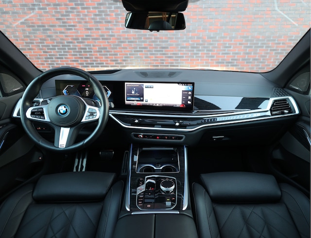 In het interieur is het goed vertoeven. Hier vinden we zwart lederen bekleding en volledig naar wens instelbare sportstoelen met verwarming. Daarnaast geniet u van een groot panoramadak, Harman Kardon geluid en een head-up display. Het interieur is luxueus afgewerkt met Fineline houten inleglijsten en contrasterende stiksels. Als ultieme Daily Driver is deze X5 uiteraard ook uitgerust met een elektrisch wegklapbare trekhaak, luchtvering en alle veiligheidssystemen die u met een gerust hart naar uw bestemming laten reizen.