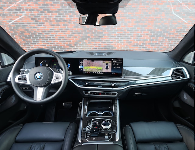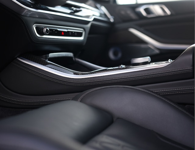 Binnenin draait alles om de perfecte mix van sportiviteit en luxe. Het interieur is afgewerkt met zwart Merino leder wat prachtig contrasteert met de carbon afwerking en het sportieve M-stuur. De sfeer wordt versterkt door Crafted Clarity glaselementen en de sfeerverlichting. Dit rijke interieur wordt afgemaakt met het unieke Sky Lounge panoramadak. Alsof dat nog niet genoeg was is deze X5 ook nog uitgerust met het premium audio-systeem van Bowers en Wilkins.