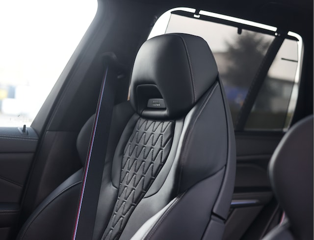 Het exterieur is vanuit elke hoek zorgvuldig afgewerkt. De Carbon zwarte lak past perfect bij de 22 inch M velgen en de opvallende rode M remklauwen. Het geeft de auto een krachtige, dynamische uitstraling die direct indruk maakt. De Iconic Glow grille, de carbon spiegelkappen en de donkere Shadow Line accenten maken het exterieur helemaal af. De M Performance onderdelen versterken zijn krachtige uitstraling met een carbon frontsplitter, diffuser en nieuwe achterspoiler.