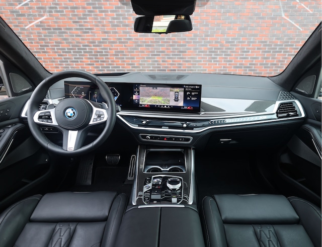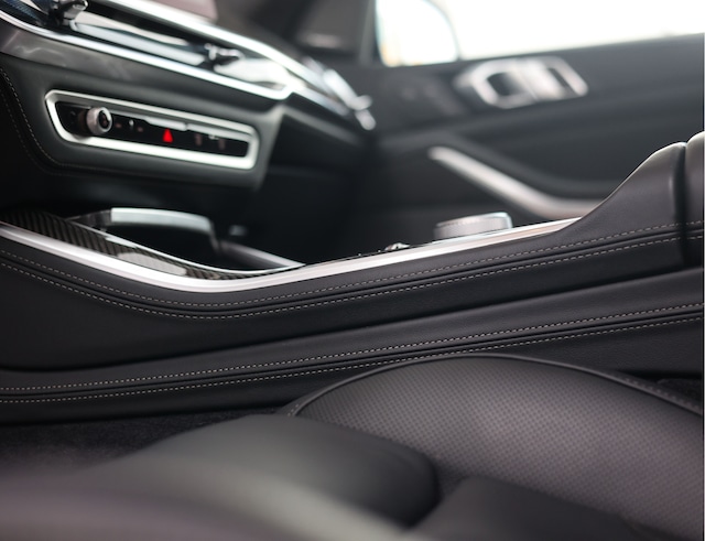 Binnenin is de X5 uitgerust met zwart Merino lederen bekleding die wordt gecombineerd met Carbon Fibre interieurlijsten, een Alcantara antraciet M hemelbekleding en het M lederen stuurwiel. De multifunctionele M stoelen zijn voorzien van verwarming, ventilatie én massagefunctie, aangevuld met stoelverwarming achter. Het Harman/Kardon surround sound systeem zorgt samen met de Crafted Clarity glasapplicaties voor een cockpit die past bij het topsegment waarin deze X5 zich begeeft.