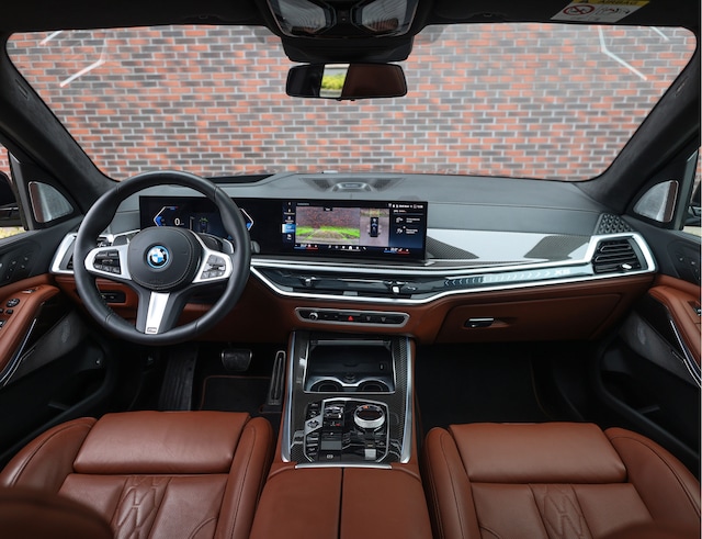 Het exterieur is uitgevoerd in Saffierzwart metallic. Samen met de 22” V-spaak velgen en het M Sportpakket Pro met hoogglans zwarte accenten heeft de auto een zeer sportieve uitstraling!
