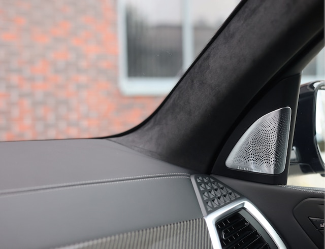 In het interieur is het goed vertoeven. Deze is bekleed met zwart Merino leder en carbon interieurlijsten. Zelfs het dashboard, de deurpanelen en middenconsole zijn bekleed met Merino leder waardoor deze BMW een exclusief gevoel geeft. De Alcantara binnenhemel met Skylounge panoramadak maken het helemaal af, evenals de met aluminium afgewerkte Bowers & Wilkins speakers.