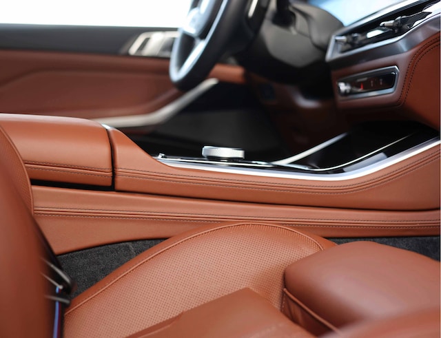 Het exterieur is namelijk uitgevoerd in Individual Verde Ermes. Een volle en warme groene kleur die de X5 een unieke uitstraling geeft. Tel hier het M Sportpakket Pro met hoogglans zwarte accenten. De bicolor velgen met daarachter rode remklauwen maken het plaatje compleet.