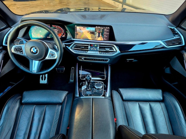 Hij oogt indrukwekkend en sportief, deze BMW X5. De automatische transmissie en de zescilinder motor maken het autorijden snel en comfortabel. Fijn, zo'n elektrisch bediend glazen panorama dak en die superhandige elektrisch bedienbare achterklep. En dan krijgt u het lederen interieur er ook nog bij! Zit u goed? De stoelen zijn eenvoudig instelbaar dankzij de elektrische bediening met geheugen. Ook 22 inch lichtmetalen velgen, LED koplampen, sportonderstel, zwarte hemelbekleding, donker getint glas achter en in delen neerklapbare achterbank horen tot de voorzieningen op deze auto.