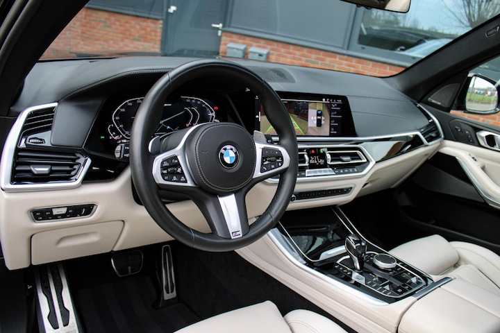 UNIEK uitgevoerd: 6-2020 BMW X5 45e M-Sport in Sapphire Black metallic met INDIVIDUAL ELFENBEINWEISS interieur!