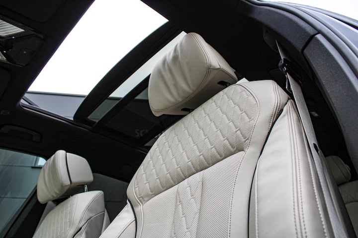 Met Harman Kardon audio, een groot glazen panoramadak met schuif/kantelfuctie, laser koplampen, luchtvering, head-up display, 4-wiel besturing, memory, keyless entry, stoelverwarming + ventilatie + massage, 22 inch velgen enz.