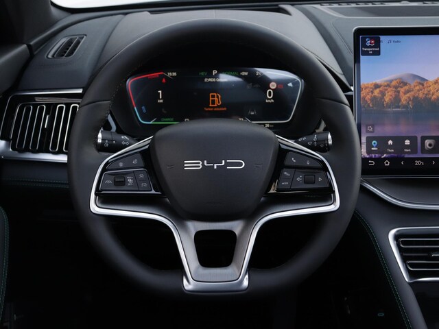 Tijdens de rit wordt je als bestuurder ondersteund door verschillende systemen die de weg en jouw omgeving in de gaten houden. Belangrijk voor jouw veiligheid en die van jouw passagiers is de verkeersbord-detectie in deze auto. Het Lane-keeping systeem zorgt voor een automatisch constante positie binnen de rijstrook. Afdwalen is uitgesloten. Botsingen met een voorligger gebeuren relatief vaak. De forward collision warning slaat tijdig alarm als dat risico ontstaat, zodat je kunt ingrijpen. In deze BYD vinden we verder een dodehoekdetectie, hill hold functie, brake assist, vermoeidheidsherkenning en bandenspanningcontrolesysteem.