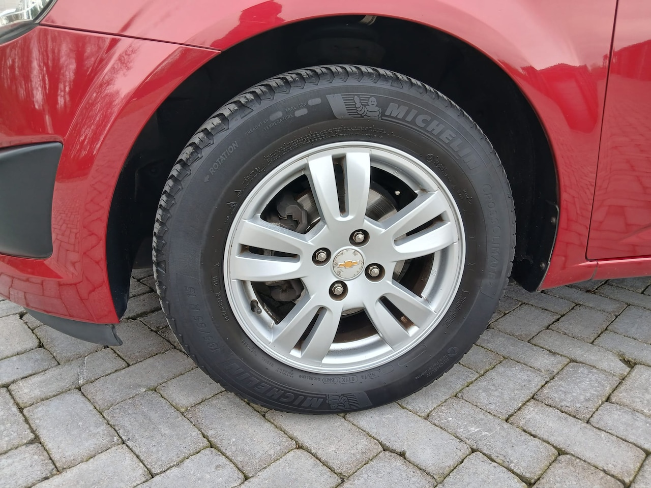 Chevrolet Aveo - 1.2 LT Aveo 1.2 LT 5-Drs Bordeauxrood NAP Cruise Airco Parkeersensoren USB/AUX Armsteun Bluetooth