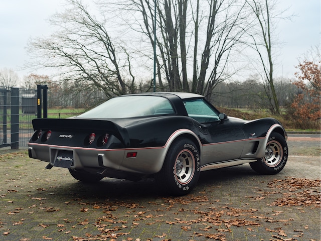 De Chevrolet Corvette C3 is de derde generatie van de Corvette die van 1967 tot 1982 werd geproduceerd. De motoren en chassisonderdelen waren grotendeels overgenomen van de vorige generatie, maar de carrosserie en het interieur waren nieuw. Het modeljaar 1979, zou de tweede keer zijn dat de Corvette de naam Stingray zou dragen, maar dan alleen voor de modeljaren 1969-76. 1978 was de 25e verjaardag van de Corvette waarbij een nieuwe fastback achterruit, de meest opvallende wijziging was. Hiermee kreeg de tien jaar oude C3 Corvette carrosserie een nieuw leven. De fastback met vast glas, kwam zowel de aerodynamica als de bruikbare bagageruimte achter de stoelen ten goede en verbeterde het zicht naar achteren. De door ons aangeboden C3 is één van de 6.502 gebouwde Indy 500-Pacecar auto’s die in 1978 zijn gemaakt, ter ere van de 62e editie van de Indy 500 race van 1978. De auto is, met nog geen 1.000 miles op de teller nog helemaal nieuw en voorzien van alle documentatie. Zo is deze Corvette meerdere malen in de prijzen gevallen bij diverse events en werd regelmatig beoordeeld tot “best of show”. Het fotoboek van de eerste eigenaar zit erbij inclusief de foto’s van de aflevering. Verder zit de originele factuur erbij en de originele stickerset die naar eigen smaak kan worden aangebracht.